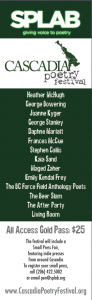 The Cascadia Poetry Festival is an international event which gathers writers, artists, scientists and activists to collaborate, discover and foster deeper connection between all inhabitants and the place itself.