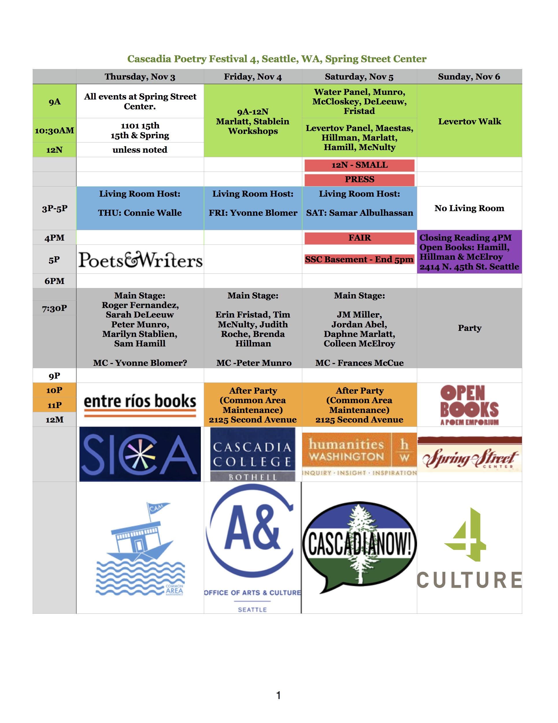 The Cascadia Poetry Festival is an international event which gathers writers, artists, scientists and activists to collaborate, discover and foster deeper connection between all inhabitants and the place itself.